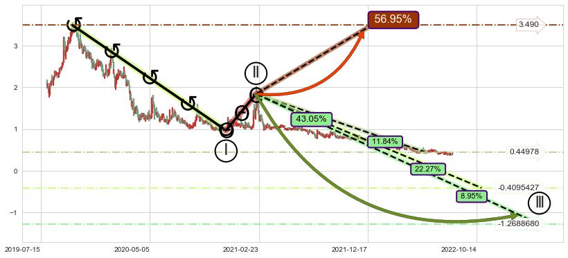 ➢ 循环浪继续向下【最低】位置(2023-03-23, -1.2688680),匹配聚类样本比例20.78%, 可能性概率8.95%