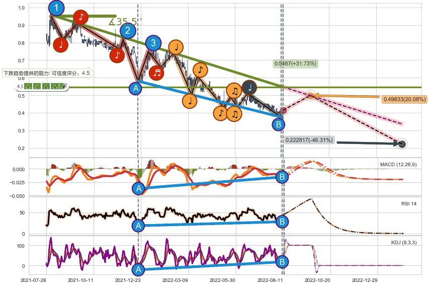 ➢ 预测:2022-09-22,【小幅反弹】稳定目前下跌趋势的前提下,预测价格:0.49833