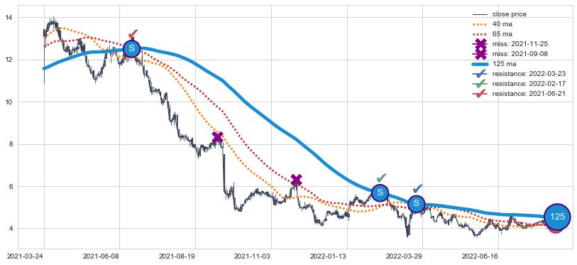 下跌趋势2021-03-24-2022-08-02,均线125确认关键阻力3处