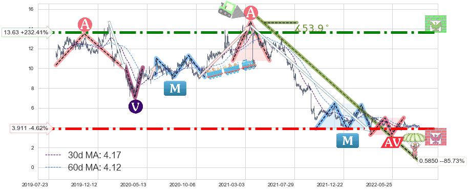 ♘ 阻力价格位13.63,可信任强度99.00%,距离最后交易2022-08-12形成的收盘价格4.10相差 +232.41%