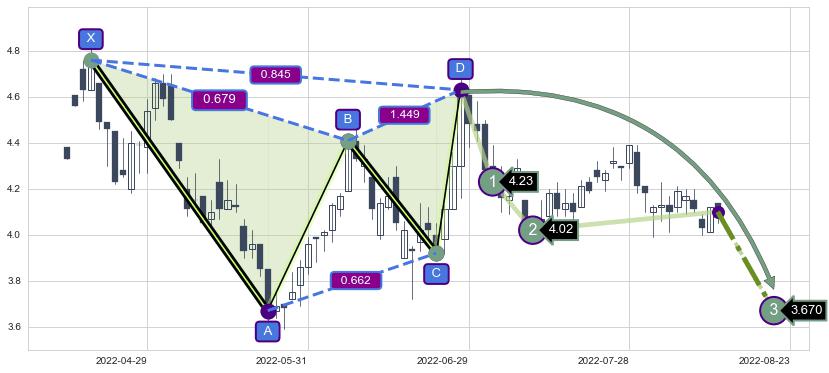 ➣ 未完成【伽利】形态起点X: 2022-05-24, 已到达C点: 2022-07-28, 预测最终D点: 2022-09-01, 共69交易日