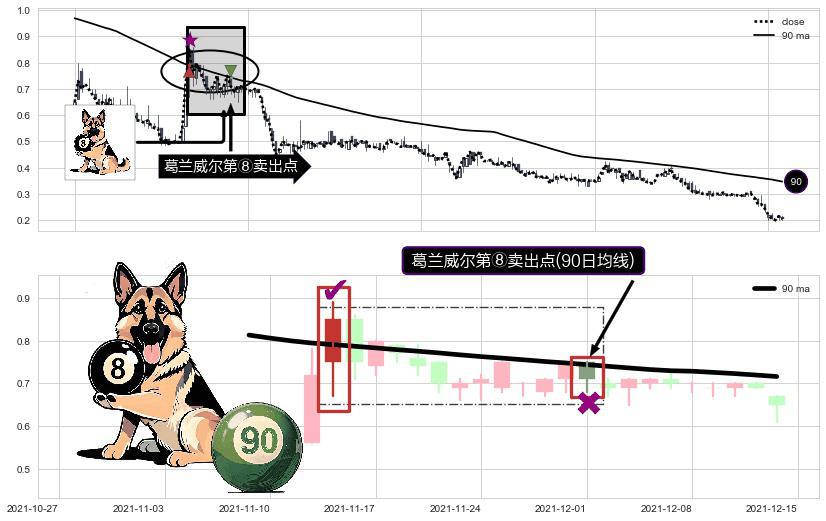 形态多维评估: ⚀ 2021-12-01-日显现 葛兰威尔均线 90日均线 第⑧卖出点 下降趋势的中继信号,后市看跌,卖出信号