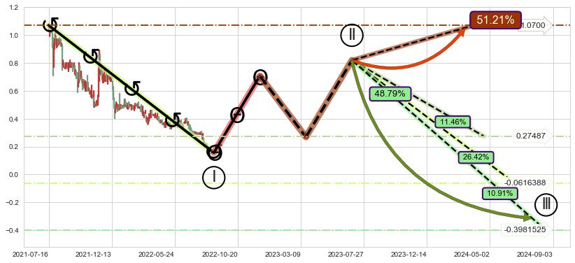 ➣ 循环浪继续向下【平均值】位置(2024-06-26, -0.0616388),匹配聚类样本比例54.15%, 可能性概率26.42%