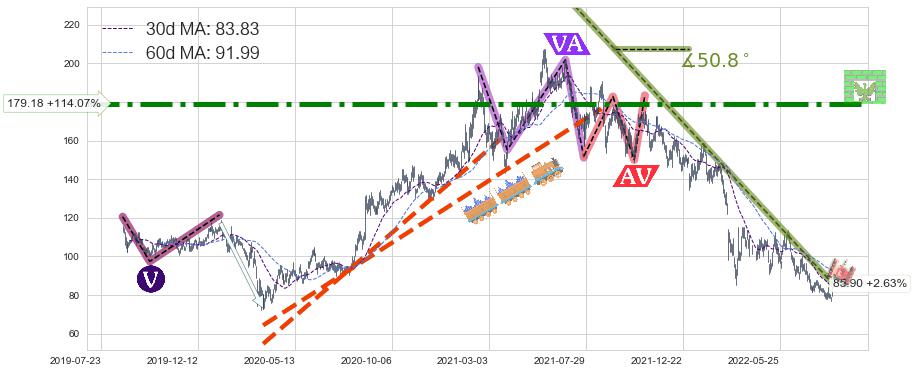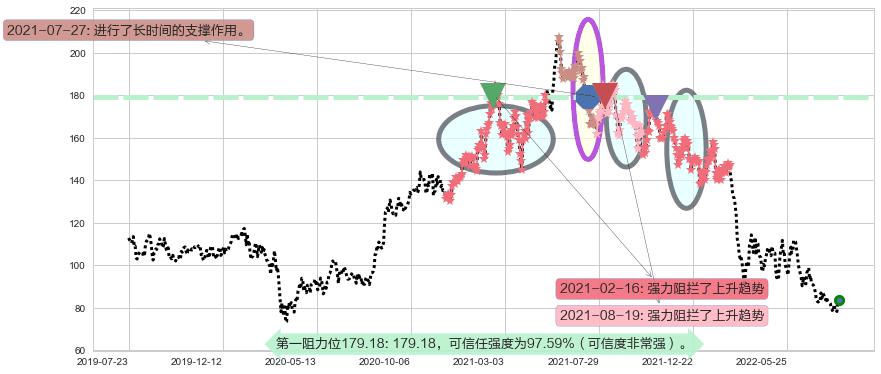 ♘ 阻力价格位179.18,可信任强度97.59%,距离最后交易2022-08-12形成的收盘价格83.70相差 +114.07%