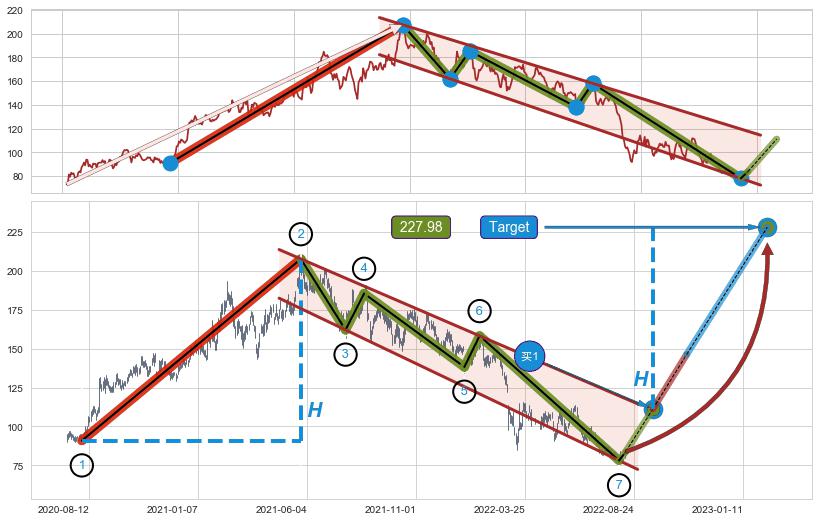 ➣ 最小中继整理涨幅→𝐇: 116.75 (𝐇旗杆的长度:旗杆起点→顶点)