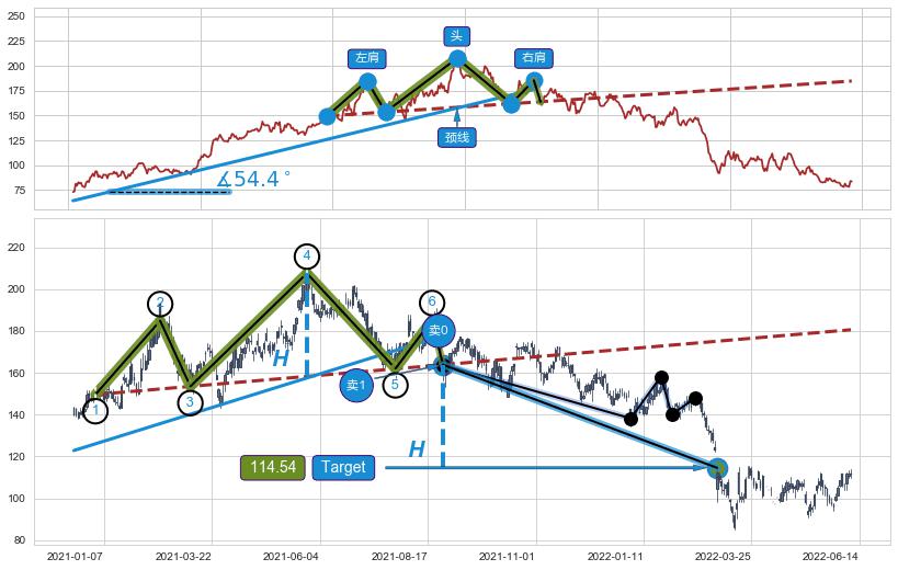➣ 最小反转跌幅→𝐇: 49.32 (头部与颈线垂直距离)