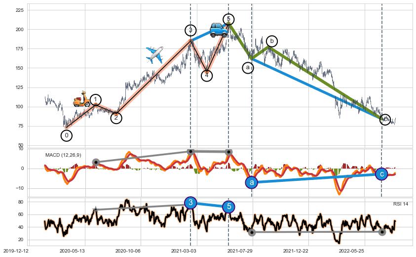 ➣ a,c调整浪RSI走势未出现明显背离