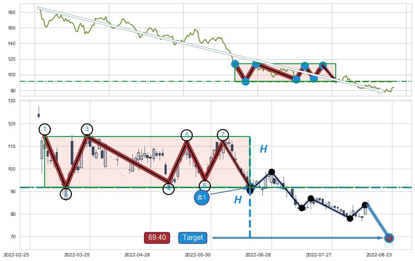 ➢ 【已确认突破】最后价格:83.70与最小【整理】第一目标价格→(2022-08-23: 69.40 )相较: 下跌空间【中等】
