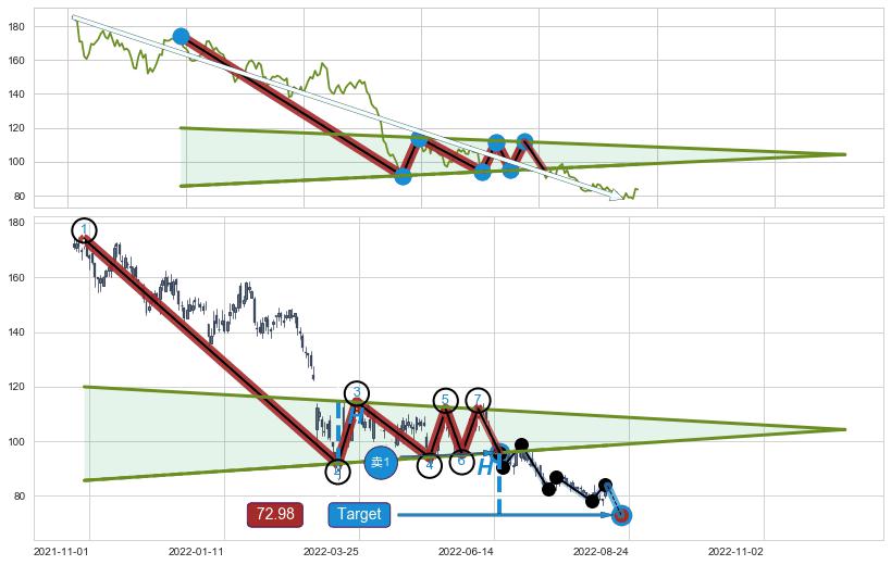 ➣ 【已确认突破】最后价格:83.70与最小【整理】第一目标价格→(2022-08-19: 72.98 )相较: 下跌空间【中等】