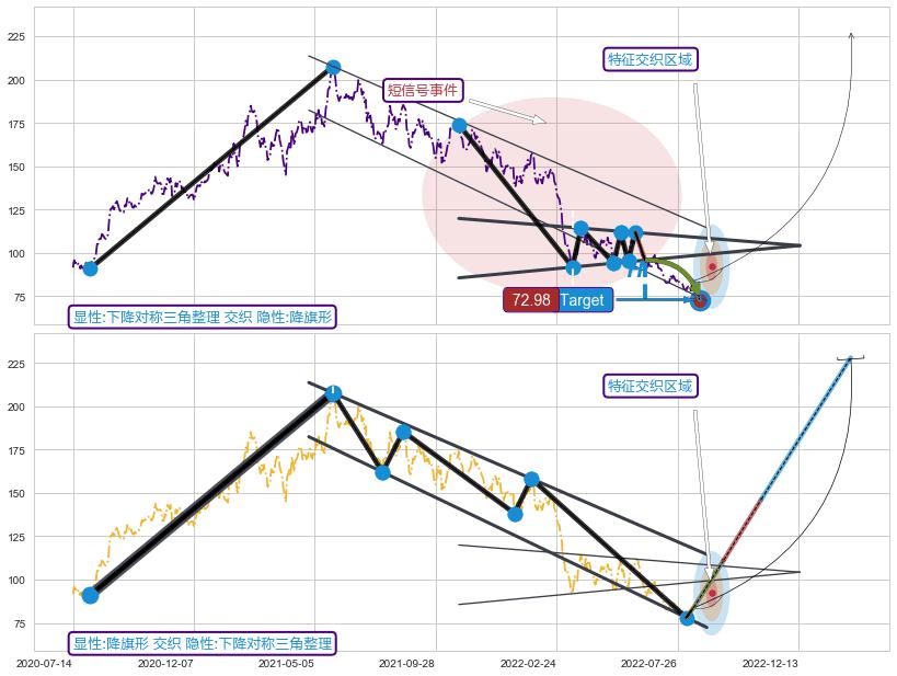 ➣ 【已确认突破】下降【对称】三角形整理 起点:2021-10-28,突破点:2022-06-16,形态共155交易日