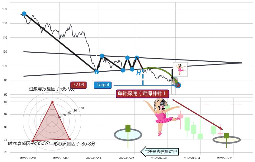 ♘ 在最后的下跌阶段2021-08-19至2022-08-12,存在 持续未破位的阻力位 ,阻力价格86.43,可信任强度87.60%,其距离最后价格83.70相差 +3.26%