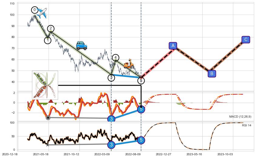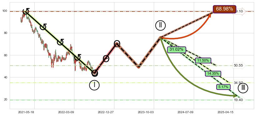 ➢ AI预测: 假定反转启动后, 第❷目标位置(2023-05-10, 51.35)