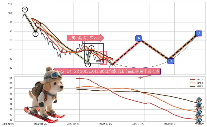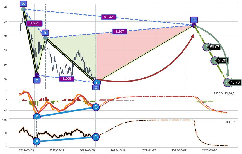 ➣ D点拟合预测价格63.72,距离最后交易收盘价格44.90相差 +41.91%