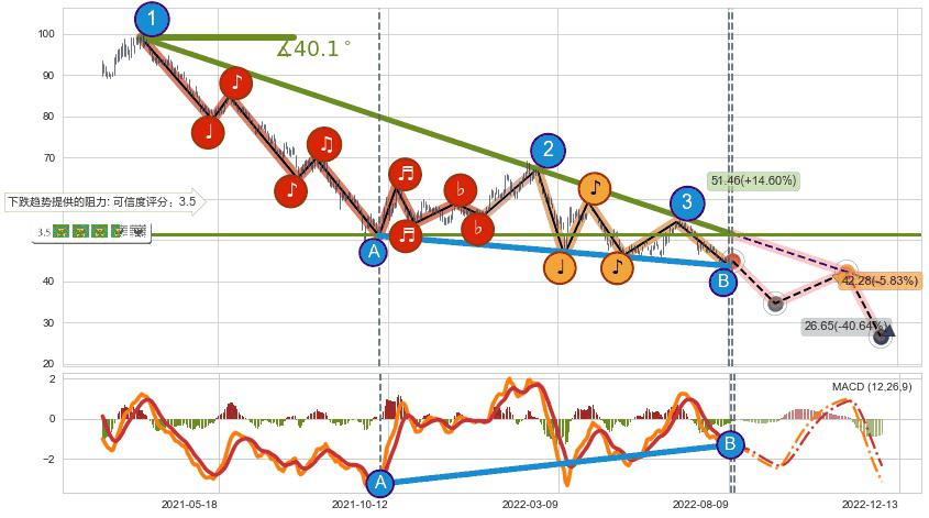 ➣ 预测:2022-11-15,【试探阻力】稳定目前下跌趋势的前提下,预测价格:42.28
