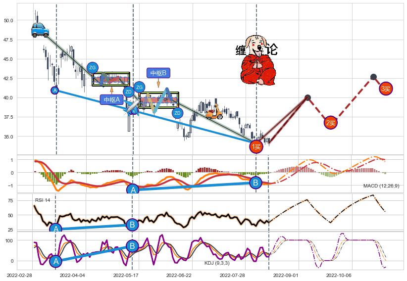| 4 🅚:【高山滑雪】买入点 ➕ ☯️:缠论买卖点下降缠中枢AB形成后猜想拐点1买已到达,猜想后续持续拉升(均值回复) ☞ 看多信号 ⇥ 【均线】交织【图形】⇥ 综合量化分数: 52 | > |