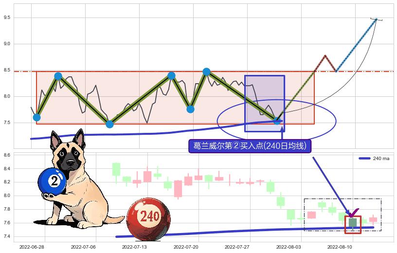 ♘ 阻力价格位8.43,可信任强度95.95%,距离最后交易2022-08-12形成的收盘价格7.68相差 +9.71%