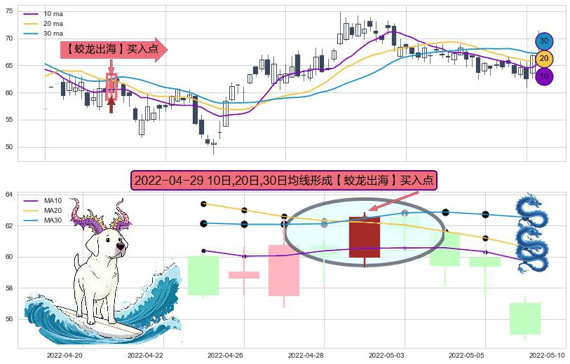 ⚀ 2022-04-29日显现 10日-20日-30日均线 【蛟龙出海】买入点 看多信号,后市看涨,买入