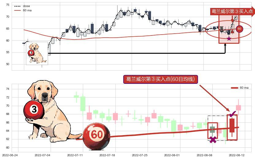 ⚀ 2022-08-11-日显现 葛兰威尔均线 60日均线 第③买入点 上升趋势的中继信号,后市看涨,买进信号