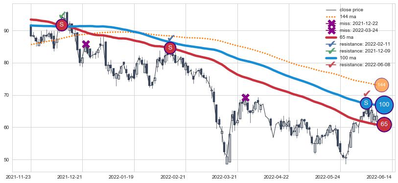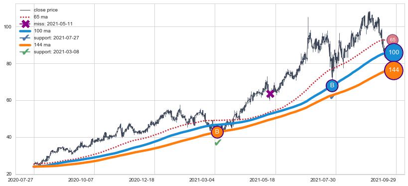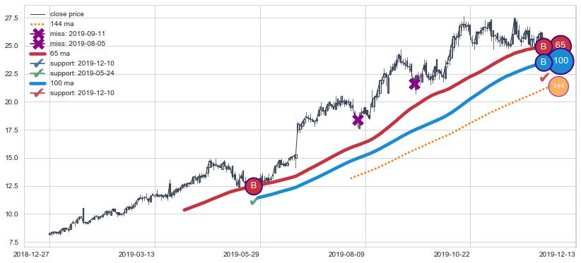 ⚁ MA3和MA8走势平行,且始终保持在短距离内,MA21始终在短中期均线下方,与短中期均线保持一定的距离,微微上行