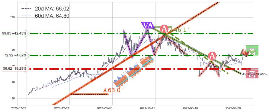 ➢ 2022-06-28到达第❶价格目标位置72.75