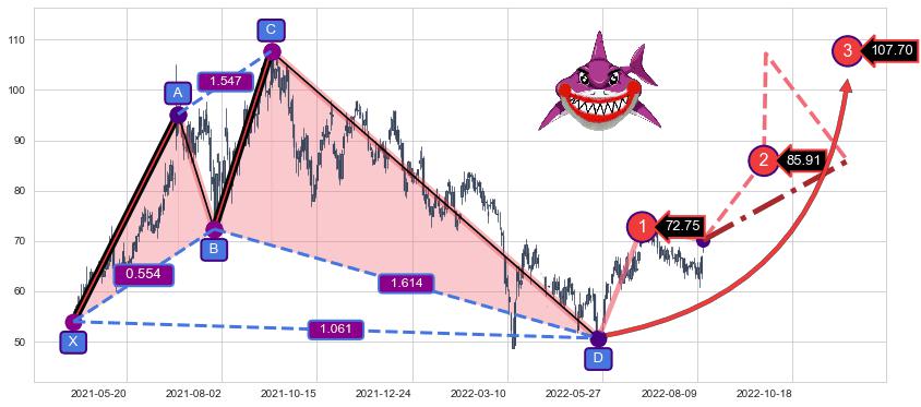 ➣ 已完成【鲨鱼】形态起点X: 2021-04-09, 终点D: 2022-05-25, 共277交易日