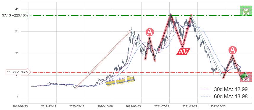 ♘ 阻力价格位37.13,可信任强度77.12%,距离最后交易2022-08-12形成的收盘价格11.60相差 +220.10%