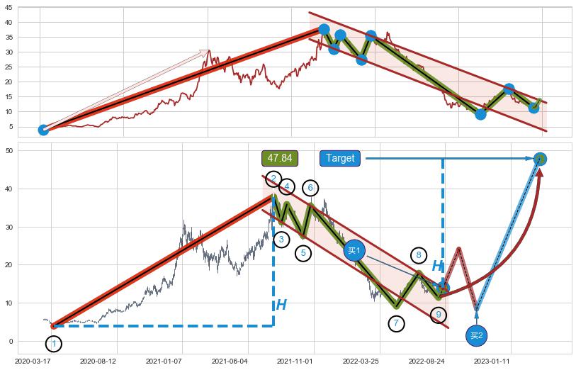 ➣ 最小中继整理涨幅→𝐇: 33.95 (𝐇旗杆的长度:旗杆起点→顶点)