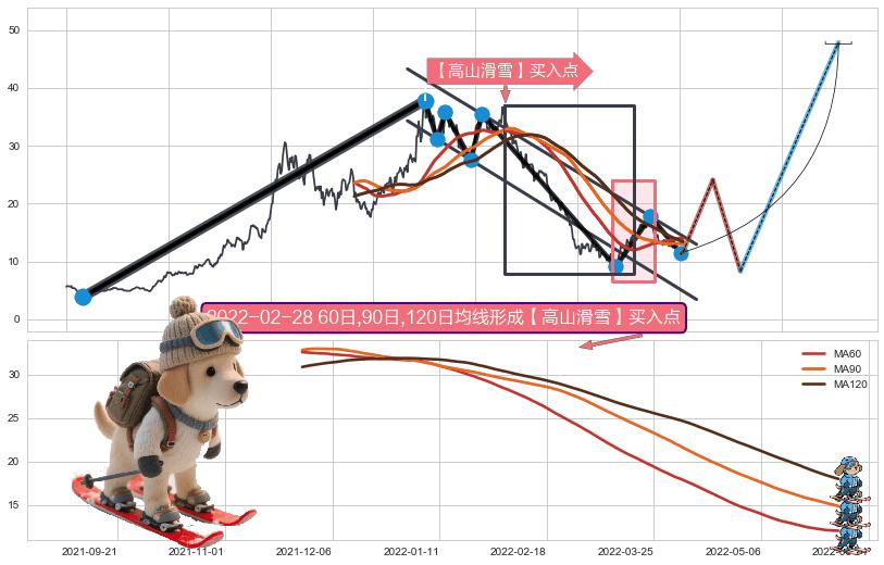 | 9 🅚:冉冉上升|稳步上涨 ➕ 🎢:【高山滑雪】买入点均线组合买入点信号形成后,猜想后续下行结束,持续反弹上涨(均值回复) ☞ 看多信号 ⇥ 【均线】交织【🅚线】⇥ 综合量化分数: 53 | > |