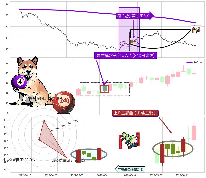 | 3 🅚:阳包阴(穿头破脚) ➕ 🎢:葛兰威尔第④买入点买入点信号形成后,猜想后续走势持续反弹上升(均值回复) ☞ 看多信号 ⇥ 【均线】交织【🅚线】⇥ 综合量化分数: 52 | > |