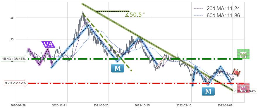 ➣ 【已确认突破】最后价格:11.14与最小【整理】第一目标价格→(2022-08-25: 9.52 )相较: 下跌空间【较小】