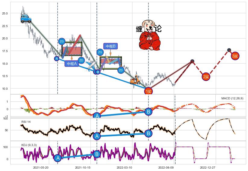 ➣ 【中枢B】:2021-11-17-2022-01-27,中枢由5笔构成,共51交易日, ZG=15.88, ZD=14.92