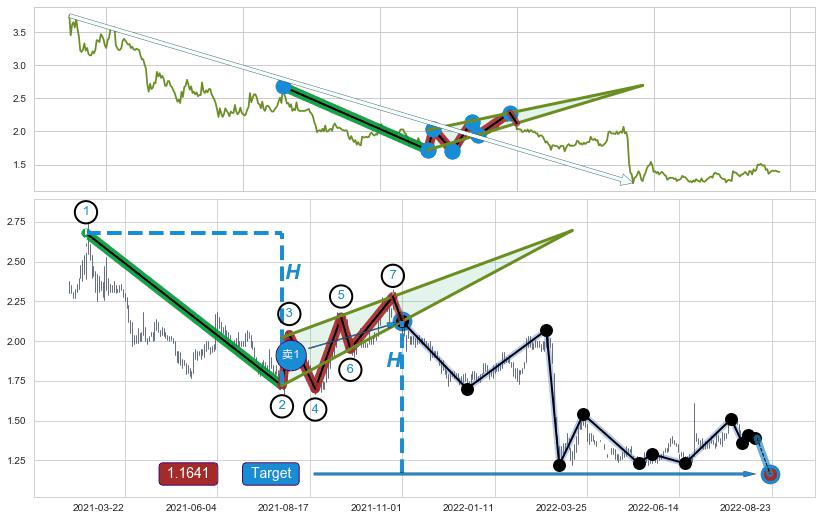 ➣ 【已确认突破】最后价格:1.3900与最小【整理】第一目标价格→(2022-08-23: 1.1641 )相较: 下跌空间【较小】