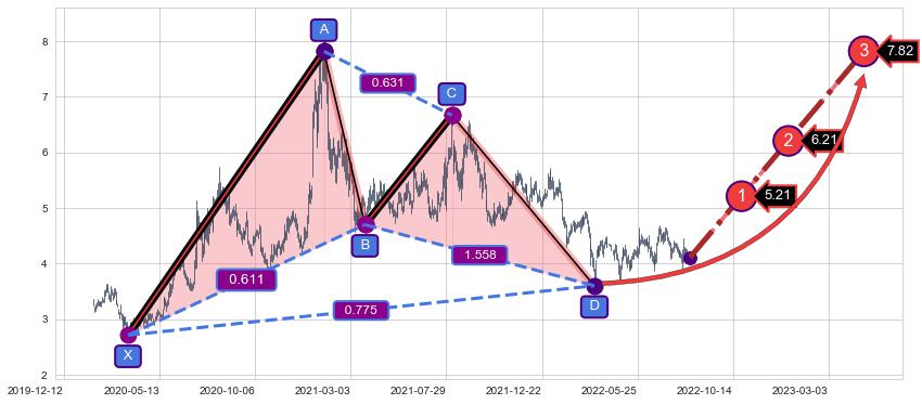 ➢ AI预测: 假定反转如期而至,第❶价格目标位置(2022-10-27, 5.21)