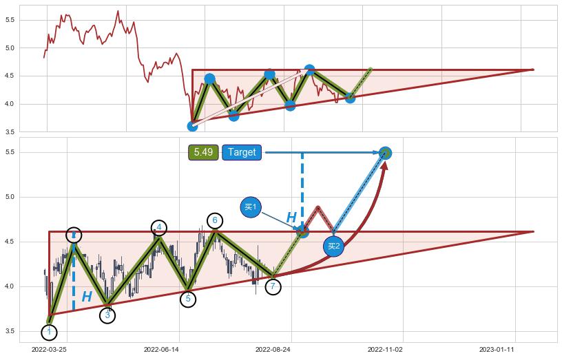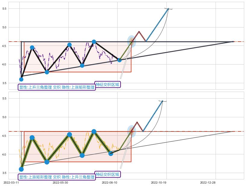 ➣ 【未确认突破,预测即将形成突破】上升三角形整理起点:2022-03-15, 预测突破点:2022-08-31,形态共114交易日