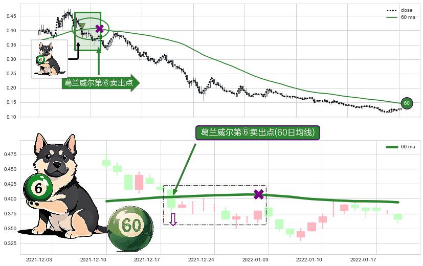形态多维评估: ⚀ 2021-12-20-日显现 葛兰威尔均线 60日均线 第⑥卖出点 走势反转见顶信号,后市看跌,卖出信号