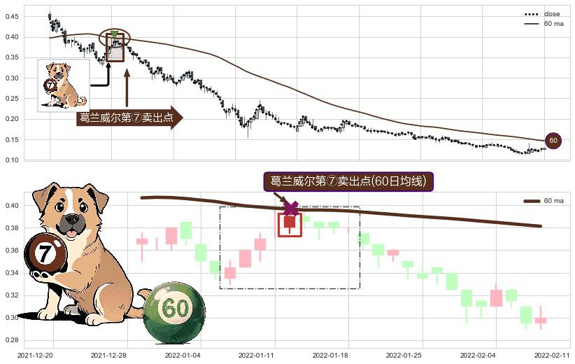 形态多维评估: ⚀ 2022-01-12-日显现 葛兰威尔均线 60日均线 第⑦卖出点 下降趋势的中继信号,后市看跌,卖出信号