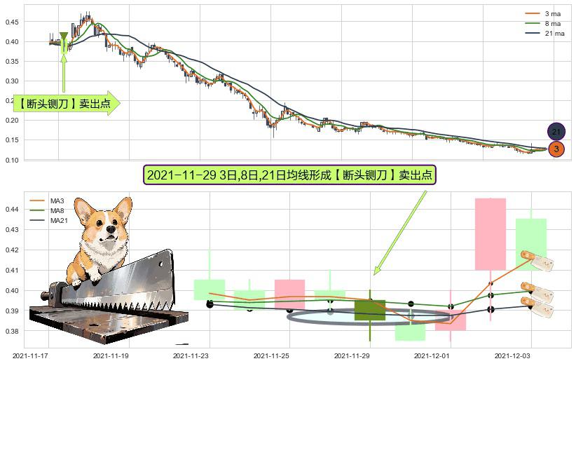 形态多维评估: ⚀ 2021-11-29日显现 3日-8日-21日均线 【断头铡刀】卖出点 看空信号,后市看跌,卖出