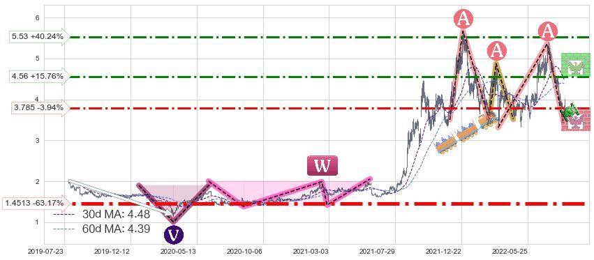 ♘ 阻力价格位4.56,可信任强度68.48%,距离最后交易2022-08-12形成的收盘价格3.940相差 +15.76%