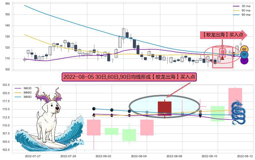 ⚀ 2022-08-05日显现 30日-60日-90日均线 【蛟龙出海】买入点 看多信号,后市看涨,买入