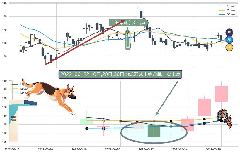 ⚀ 2022-06-22日显现 10日-20日-30日均线 【绝命跳】卖出点 看空信号,后市看跌,卖出