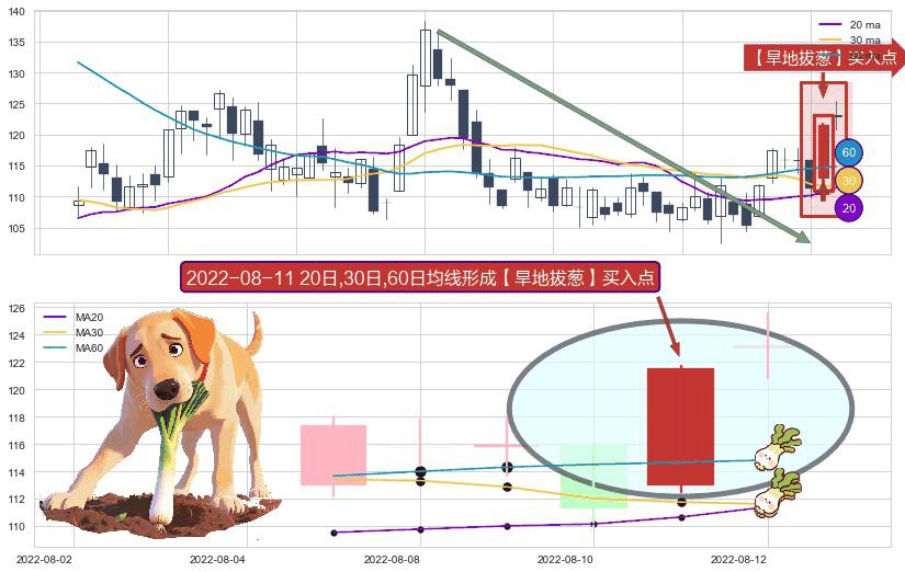 ⚀ 2022-08-11日显现 20日-30日-60日均线 【旱地拔葱】买入点 看多信号,后市看涨,买入