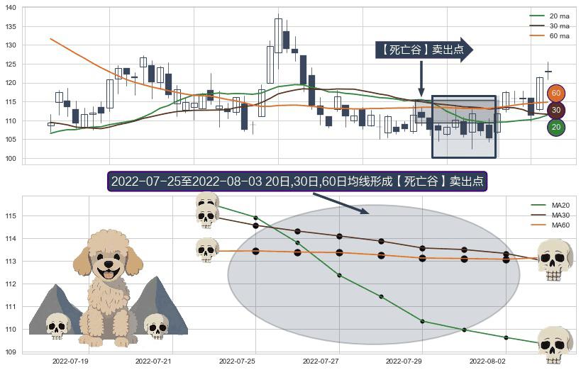 ⚀ 2022-07-26-日至2022-08-03-日显现 20日-30日-60日均线 【死亡谷】卖出点 看空信号,后市看跌,卖出