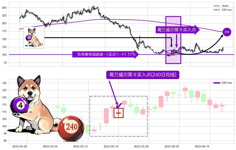 ⚀ 2022-05-19-日显现 葛兰威尔均线 240日均线 第④买入点 下降趋势均值回复的短线反弹信号,后市看涨,买进信号