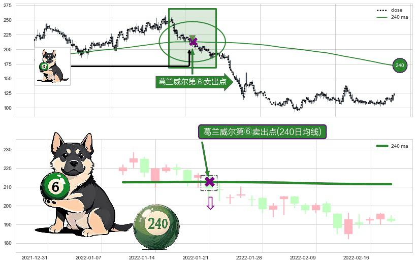 ⚀ 2022-01-21-日显现 葛兰威尔均线 240日均线 第⑥卖出点 走势反转见顶信号,后市看跌,卖出信号
