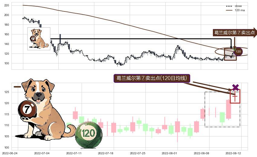 ⚀ 2022-08-12-日显现 葛兰威尔均线 120日均线 第⑦卖出点 下降趋势的中继信号,后市看跌,卖出信号