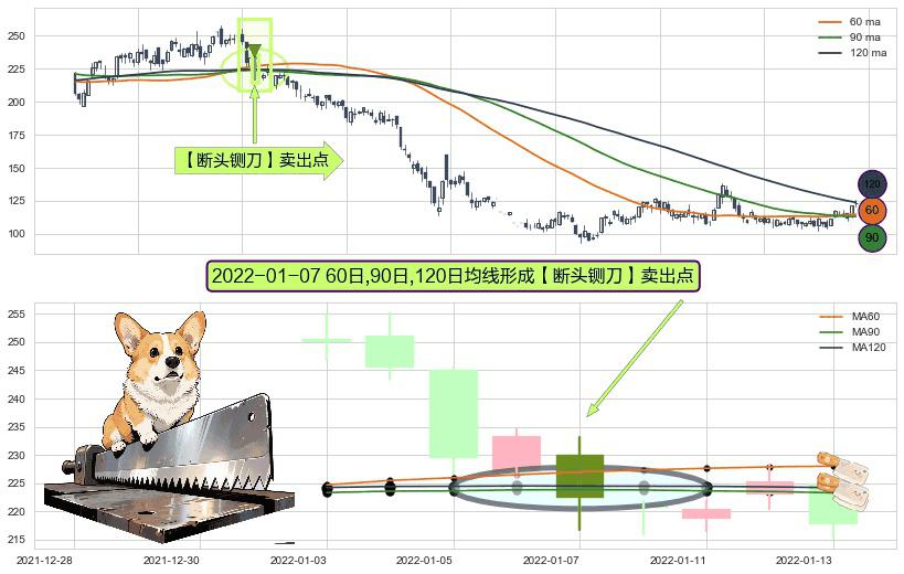 ⚀ 2022-01-07日显现 60日-90日-120日均线 【断头铡刀】卖出点 看空信号,后市看跌,卖出