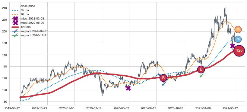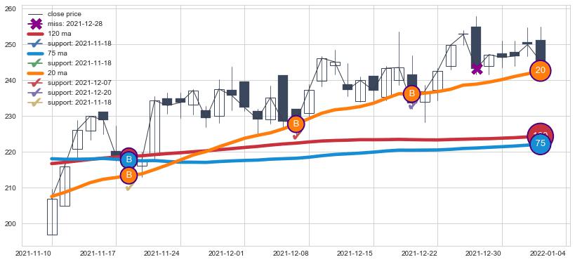⚃ 在破位点附近ma走势已有下垂迹象,稍后的走势中ma下降趋势明显,信号【可信度高】