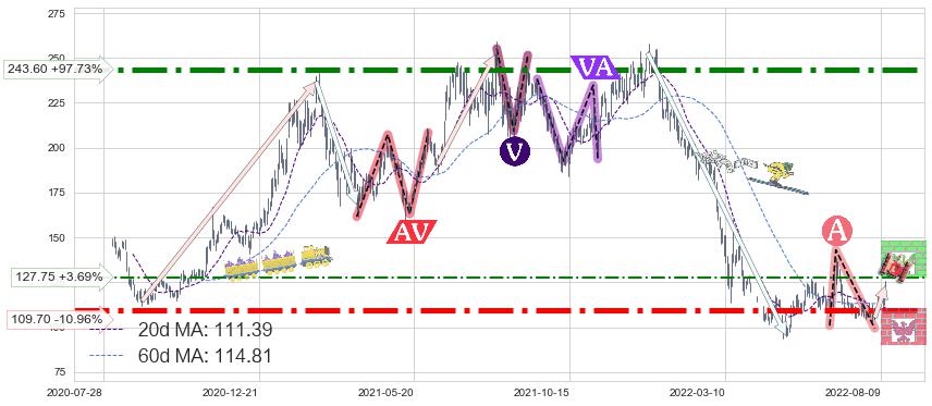 ➢ 【仅预测突破】最后价格:123.20与预测突破价格:134.89→【空间中等】后续最小【反转】第一目标价格→(2022-10-04: 180.51 )