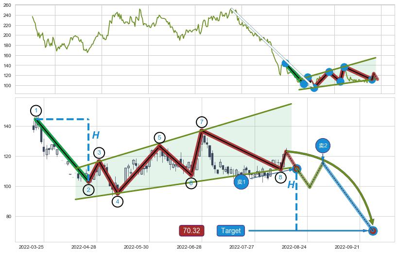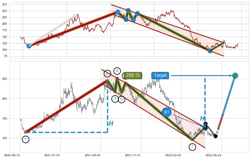 ➣ 最小中继整理涨幅→𝐇: 130.90 (𝐇旗杆的长度:旗杆起点→顶点)