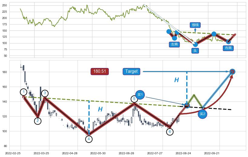 ➣ 【未确认突破,预测即将形成突破】头肩底起点:2021-12-24, 预测突破点:2022-08-19,形态共159交易日